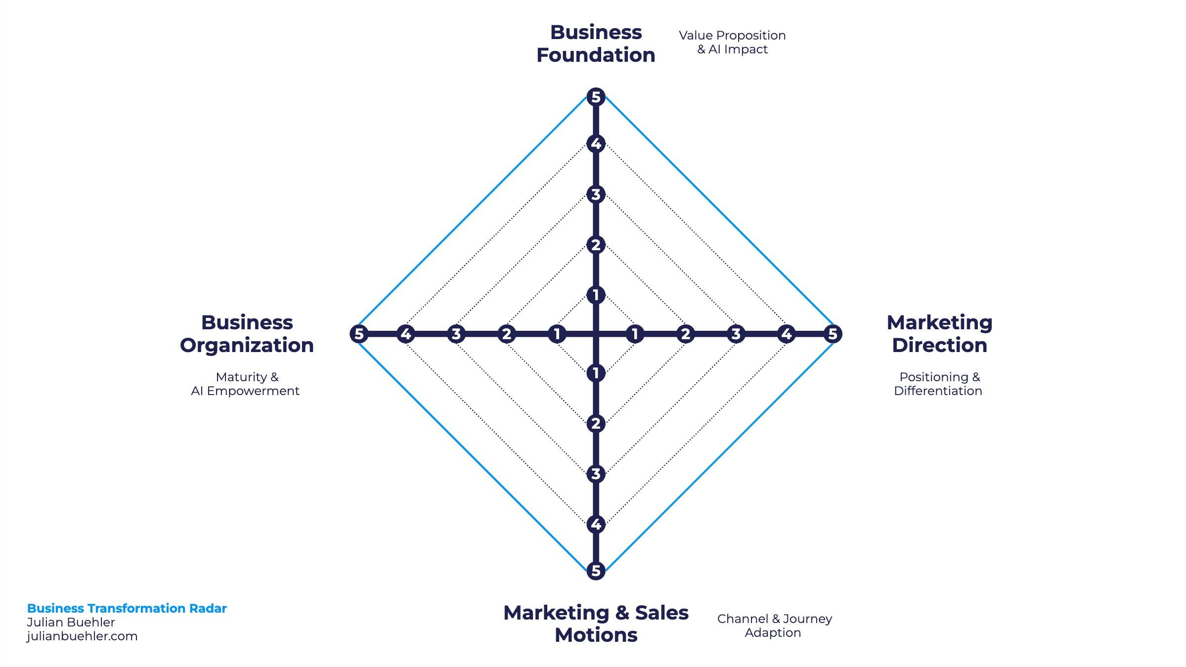 The Business Transformation Radar, developed by Julian Buehler, maps the four dimensions that determine today’s performance and tomorrow’s growth.