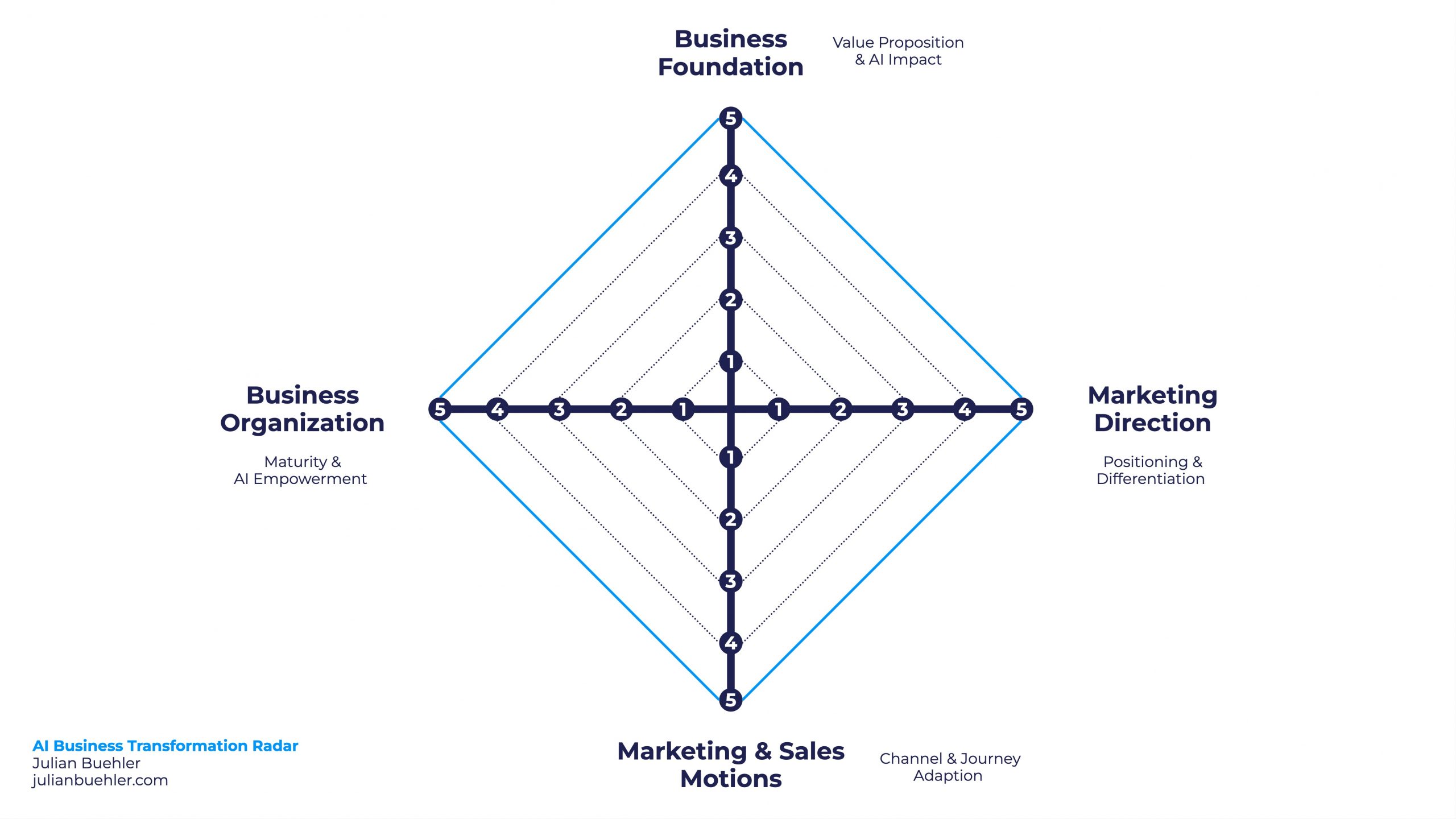The AI Business Transformation Radar, developed by Julian Buehler, maps the four dimensions that determine today’s performance and tomorrow’s growth.